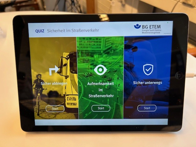 Auf dem iPad ist ein Quiz zur Sicherheit im Straßenverkehr programmiert.